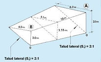 Anchura de la base = 10 - (2 x pendiente x profundidad) = 10 - (2 x 2 x1 m) = 6 m.